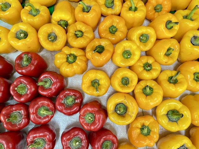 カラフルなパプリカと、緑のピーマン。